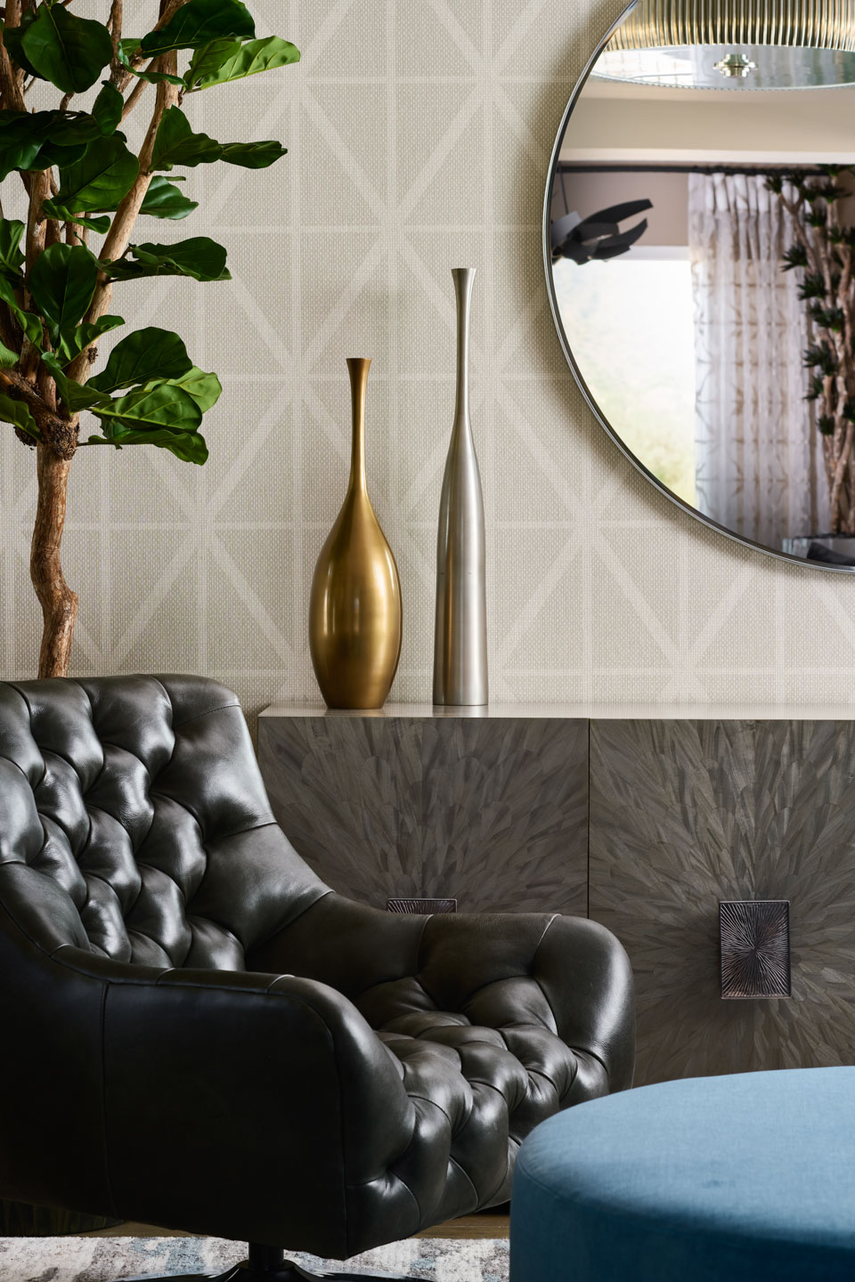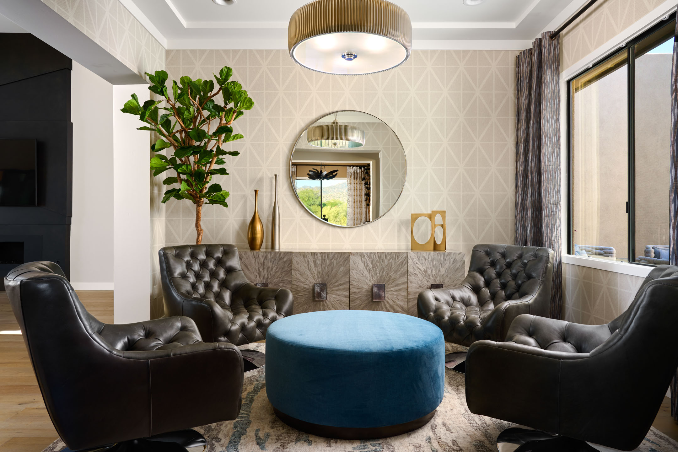 The project scope for this McDowell Mountain Ranch home was to provide turnkey furnishings, art and accessories throughout, as well as designing a custom steel fireplace focal wall. New glass wine walls are slated to be installed Spring of 2022.
